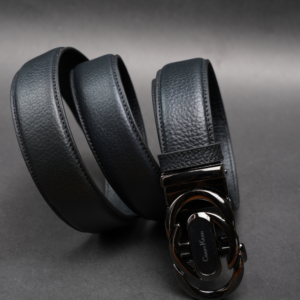Zays Handcrafted Imported Genuine Leather Auto Gear Belt for Men – Premium Quality, Adjustable, Stylish & Durable – (BC122-BS110-Black)