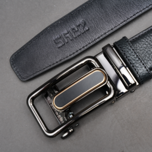 Zays Handcrafted Imported Genuine Leather Auto Gear Belt for Men – Premium Quality, Adjustable, Stylish & Durable (BC134-Black)