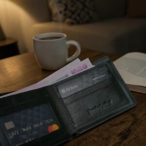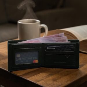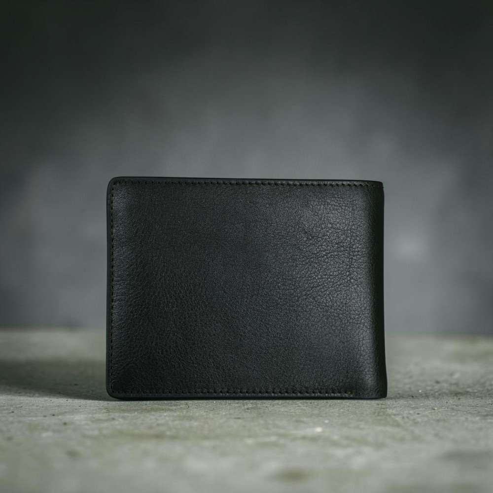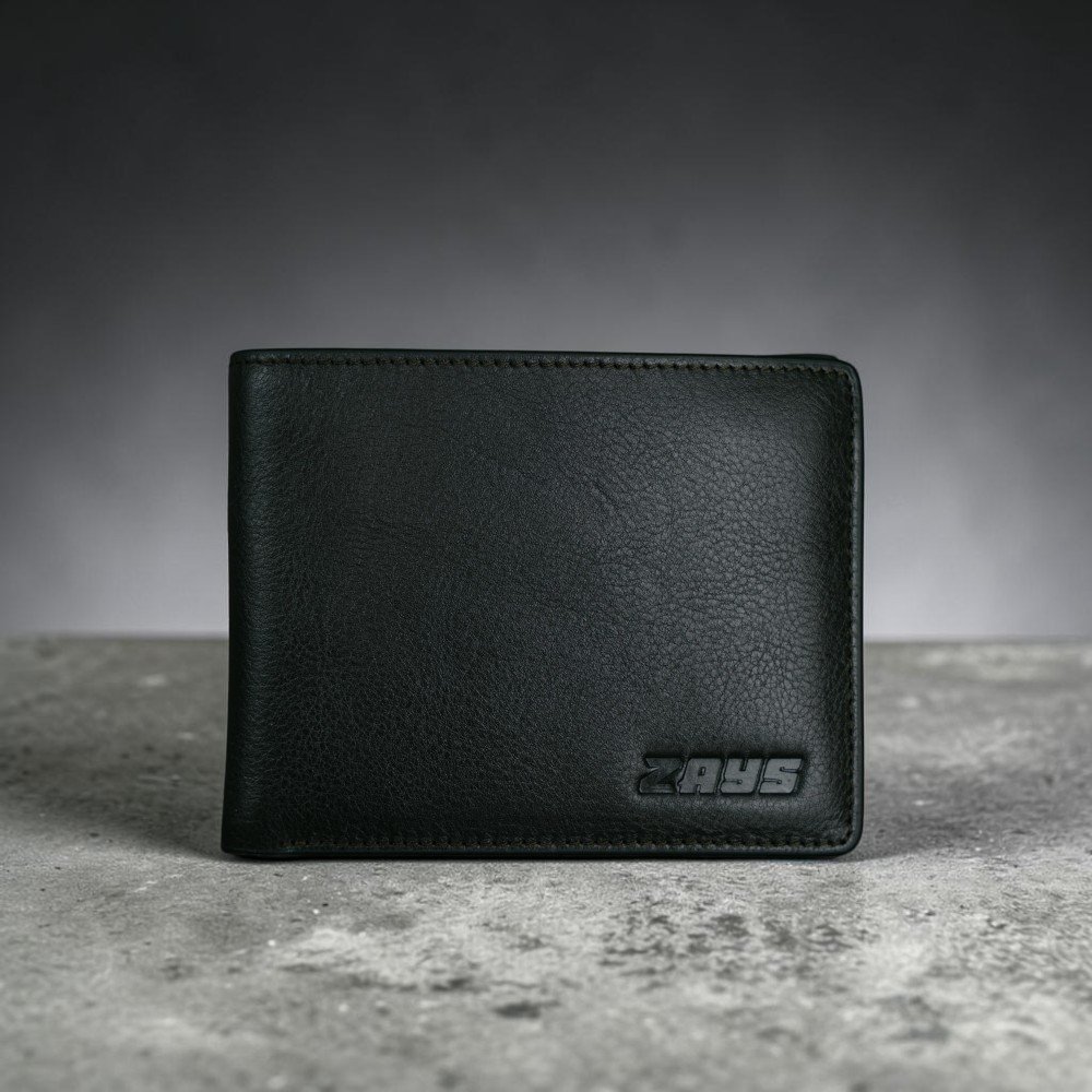 Zays Handcrafted Premium Leather Bifold Short Wallet (Black)