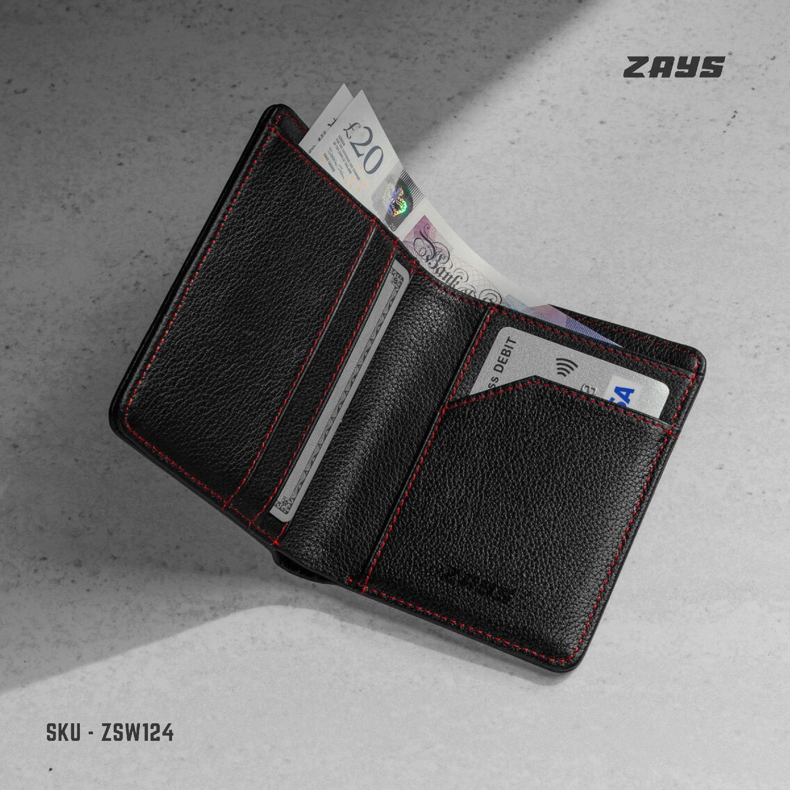 Zays Handcrafted Premium Leather Bifold Short Wallet (ZSW124-Black)